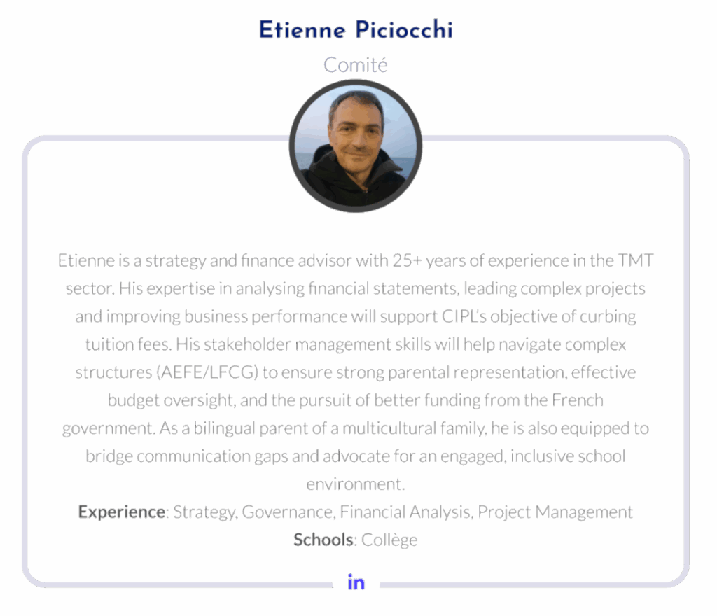 The CIPL is a dedicated team committed to keeping you informed and representing your interests within the Lycée Français Charles de Gaulle and its annexes.